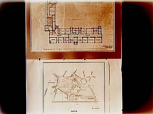 Förslag och ritningar av Östra Folkskolebyggnaden i Örebro. Karta.