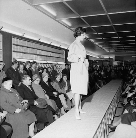 Titel: Oscarias nya affär, skoaffärsinteriör, modevisning.