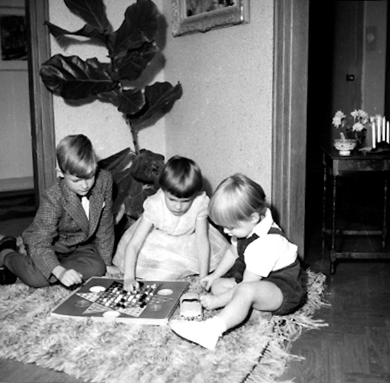 Rumsinteriör, tre barn.