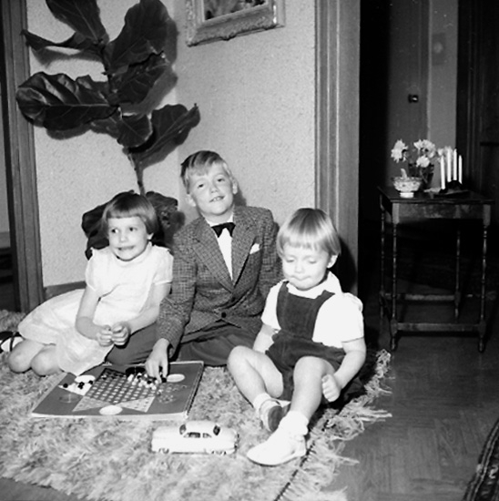 Rumsinteriör, tre barn.