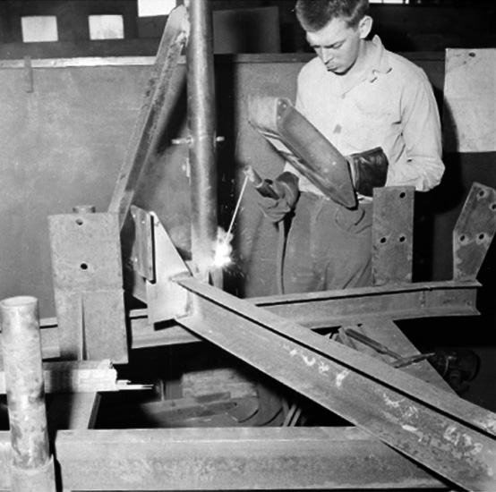 Gustafsson & Görtz, verkstadsinteriör, svetsning, en man.