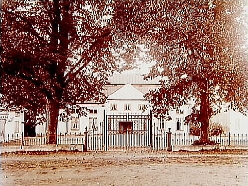 Nynäs säteri, herrgårdbyggnad i en och en halvvåning med frontespis och brutet tak, två flygelbyggnader.