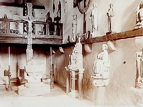 Gotlands Fornsal, interiör från avdelningen för medeltida kyrklig konst. Helgonbilder.