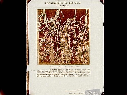Bakteriekulturer för baljväxter, rötter av sojaböna med och utan bakterieknölar.