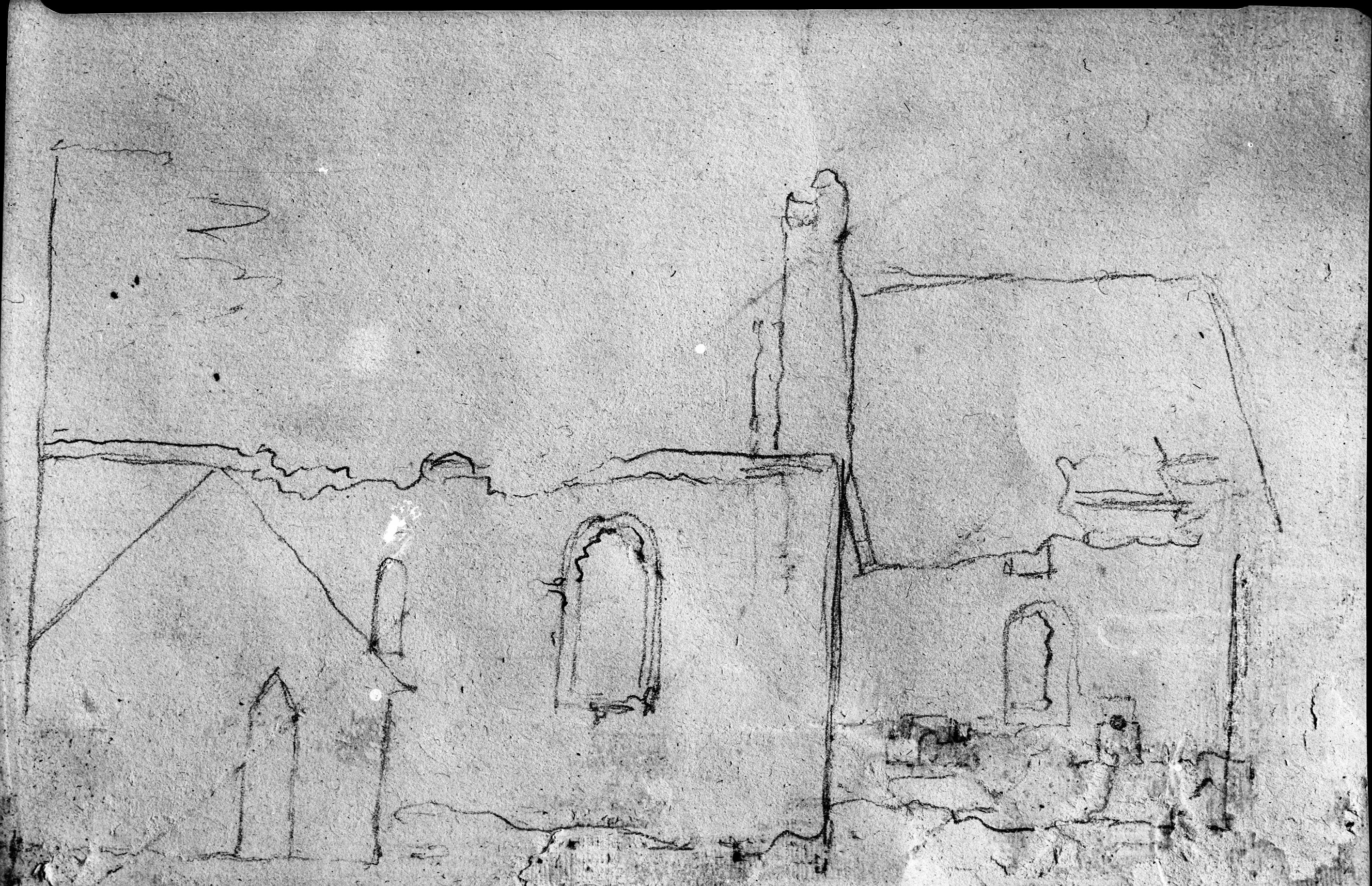 Kyrkan mot söder. Foto efter teckning, troligen från omkring 1850.