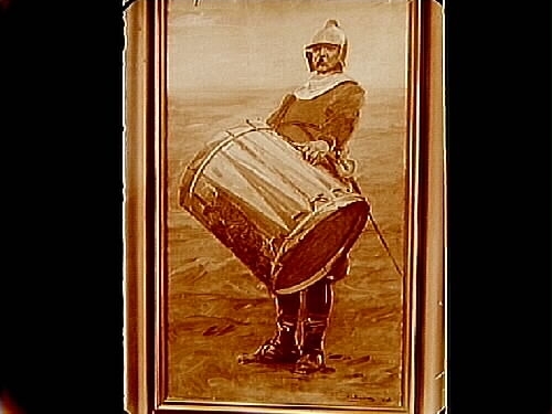 Oljemålnig. Motiv: trummslagare.