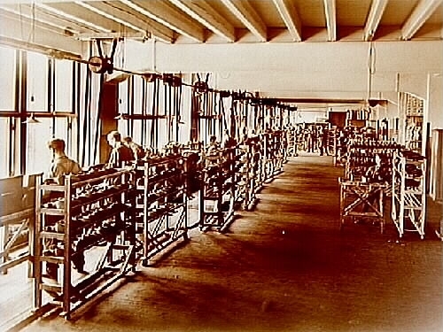 Titel: Skofabriken Engelbrekt, interiör från putsavdelningen på andra våningen. AB J. Pehrson & Comp.