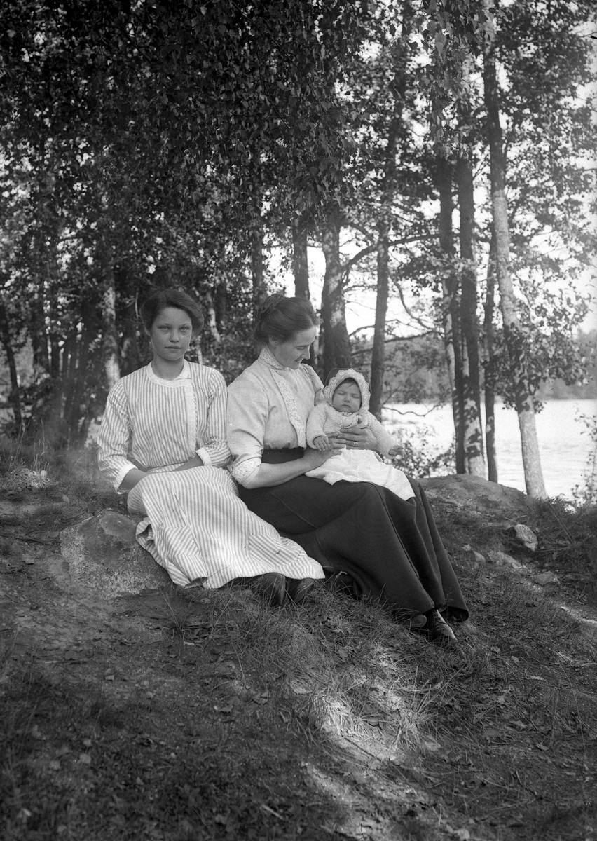 Två kvinnor med litet barn