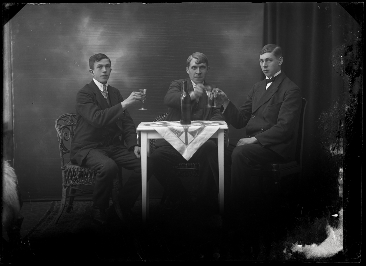 Tre män som skålar