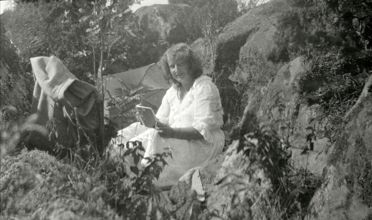 Anne-Beate med litet målarstativ