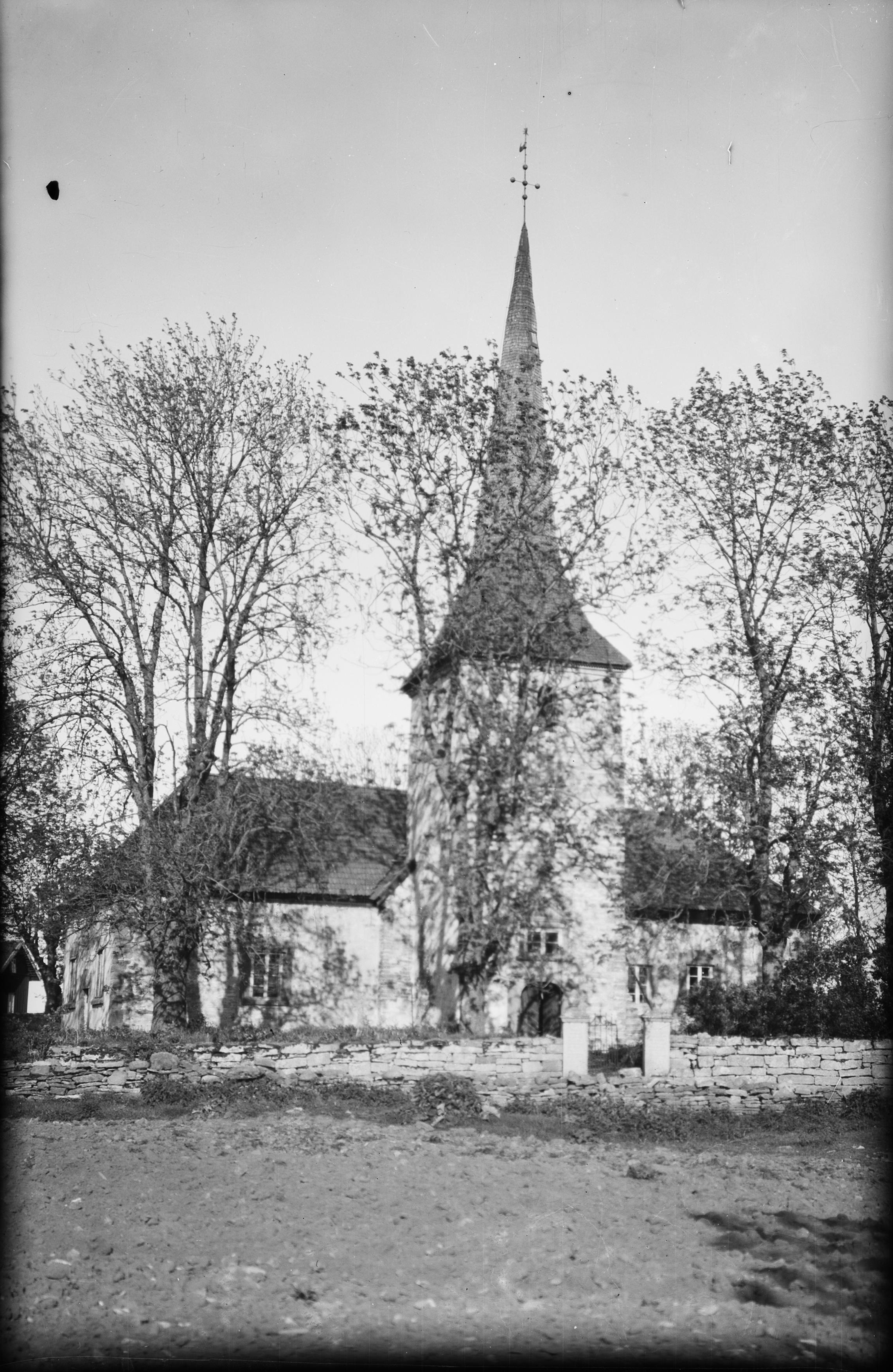 Kyrkans exteriör från väster.