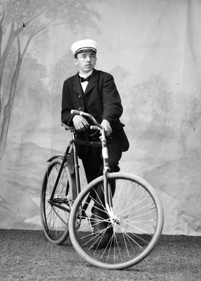Herre med cykel.