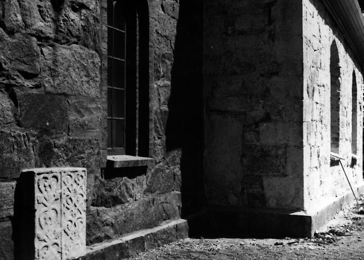 Titel: Friel. Kyrkan av sten med smalare långsträckt kor härrör möjligen från ca 1200. Tornet av tuktad granit byggdes 1884. Altaruppsatsen härrör från1600-talets senare del. Dopfunten från 1100-talet samt några träskulpturer från ett altarskåp från 1400-talet har bevarats.