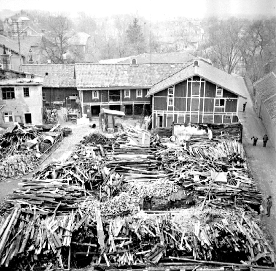 (Fotot taget från ställning för reparation av fönster efter eldsvådan bredvid).