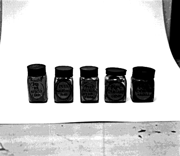 Skara. Veterinärinrättningen. Veterinärapotekets burkar.