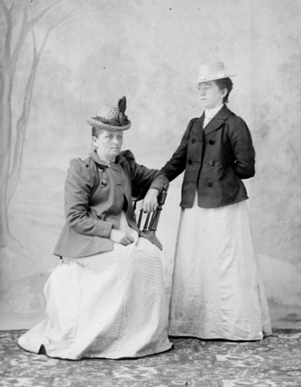 Titel: Ateljé. Två damer. Fotograf: Ellen Kock? Axel Lundbäck m.fl. Gullspångssamlingen. Bilder från Gullspång med omnejd.