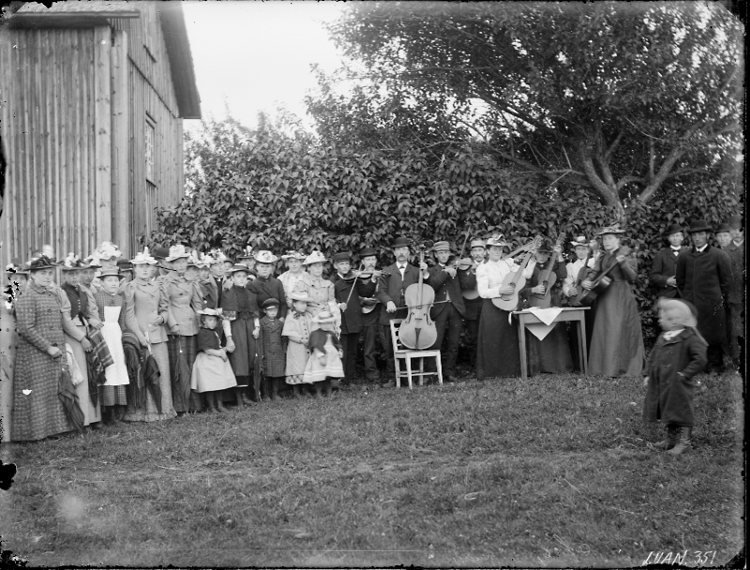 Större sällskap, möjligen en frikyrkosammankomst.