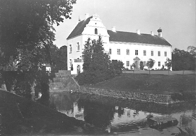 två våningar, tidigare östra längan i en kringbyggd borg, ingår delar från 1500- och 1600-talen. En tredje våning revs vid en ombyggnad under 1700-talets förra del. En tornartad tillbyggnad uppfördes 1854.