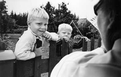 Små sommargäster i Valve, Eskelhem, får daglig påhälsning av fru Astrid Friborg, bilåkande lantbrevbärare, på linjen Klintehamn - Västergarn - Klintehamn. Foton 10 - 11 augusti 1964.