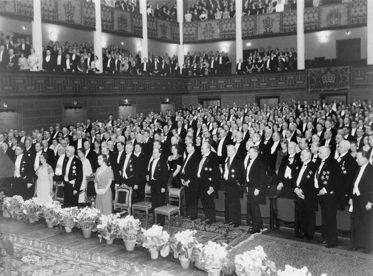 I närmaste raden: från höger prinsessan Ingrid, konung Gustaf V,