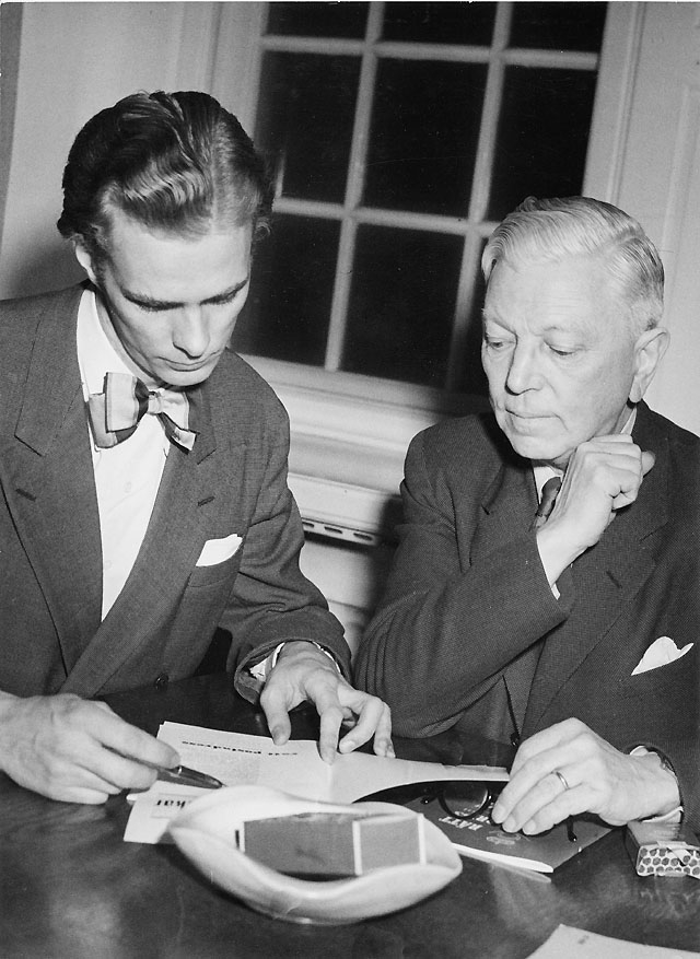 Postdirektör Gunnar Linden, Stockholm D, t.h., och förste