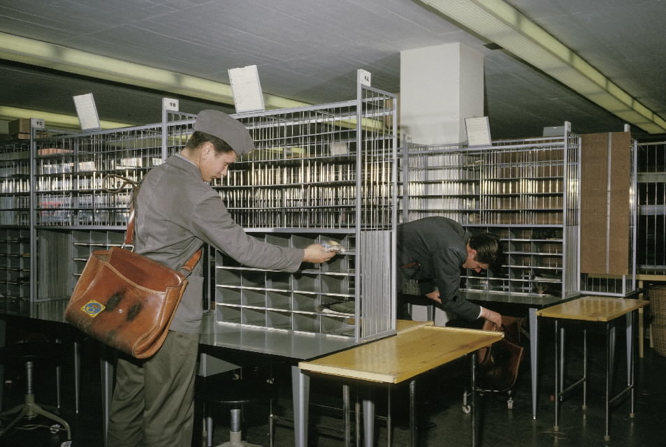 Seriebild 4. Brevbärarsalen kl 0600 då personalen anländer till