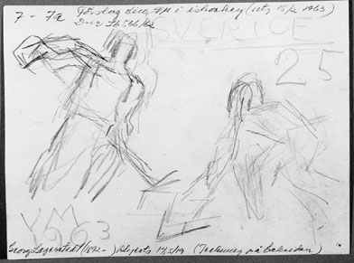 Förslagsteckningar utförda av konstnären Georg Lagerstedt (1892 - ). (Förslag 7, blyertsteckning, på bladets framsida).