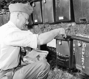 Postlådesamlingen vid Singö handel får dagens post av lantbrevbärare Erik Johansson.