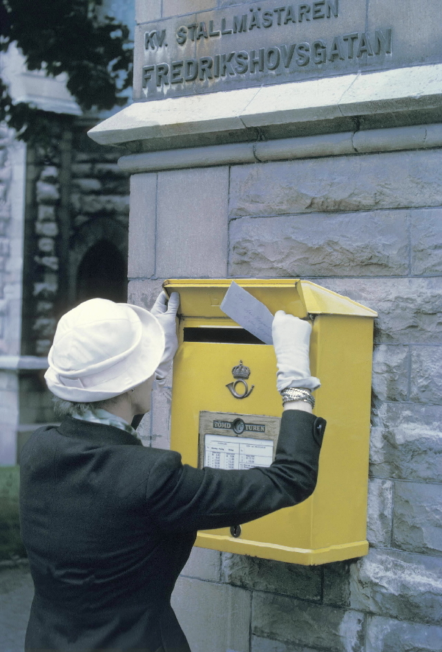 postar ett brev hon skrivit till sin sonson. Bilden skall ingå i en