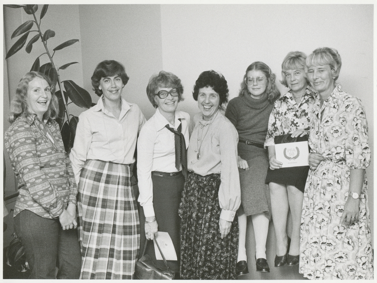 Gruppbild med PFA:s duktiga frimärksförsäljare. Fr v: Anita Skoog,