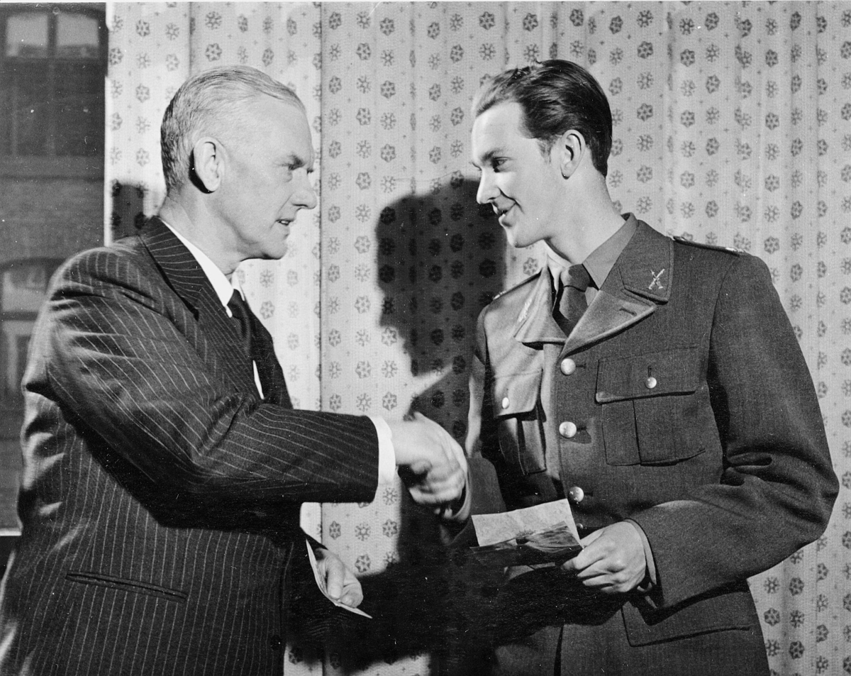 Postsparbankschefen H. Holmström överlämnar 1:a priset 5.000:- i