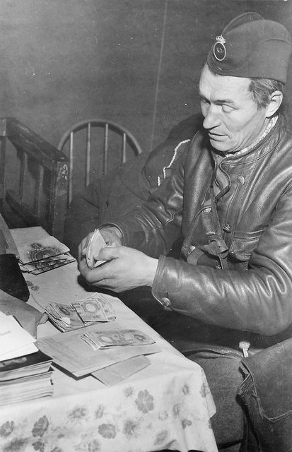 Lantbrevbärare Johannes Sarri kontrollräknar pengarna som skall