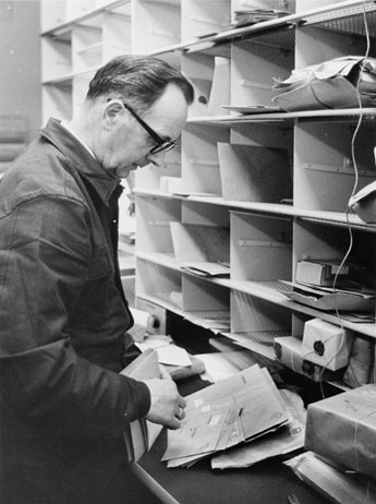 Pkp 310. Kupémästare Sigurd Kassberg räknar reken.