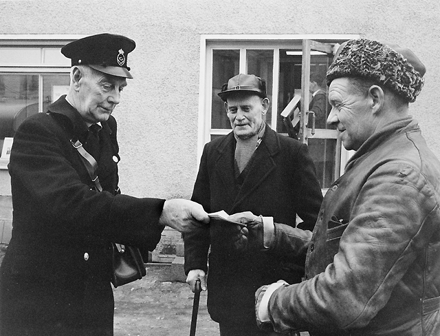 säljer postens helgkort till Trosa-borna Manfred Svensson och Birger