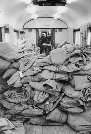 Pkp 310. Säckstuvarna i resgodsavdelningen färdiga för lossning i