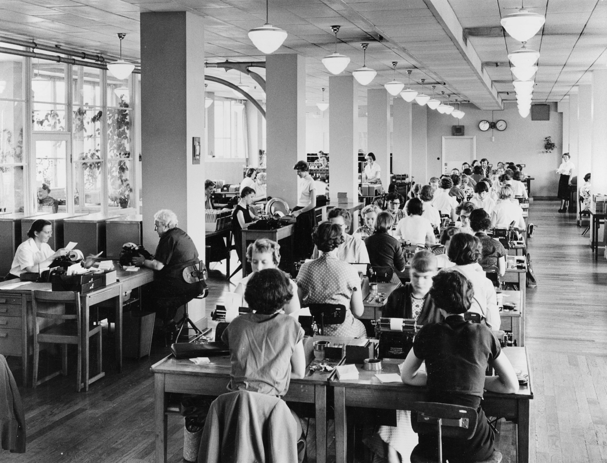 Bokföringsavdelningen Giro E, på 4 trappor. Stansning av hålkort.