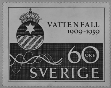Förslagsritningar - ej antagna - till frimärke Vattenfall 50 år, utgivet 20/1 1959. Konstnär: Tor Hörlin. Förslag. "Vatten-ej sinus-kurvor. Valör 0:60 kr.