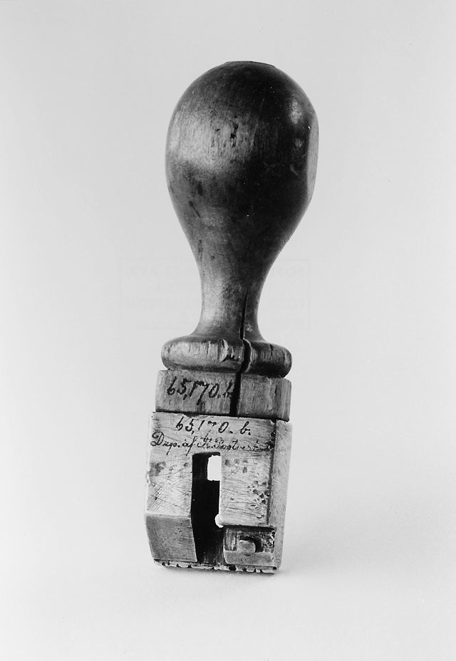 Stämpels stående - med den nedslipade delen (avfasad) synlig.