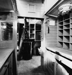 Uppställd på bangården vid Järnvägsmuseum i Tomteboda. Interiör.