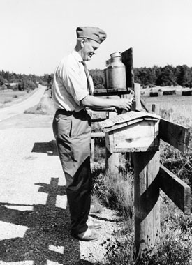Lantbrevbärare Erik Johansson vid brevlådor i Ruggsättra, Sverige.