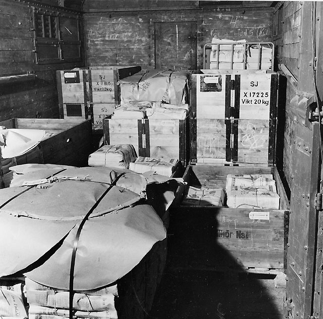 Pallaster i Grh-vagnen. I bortre högra hörnet en pall med
