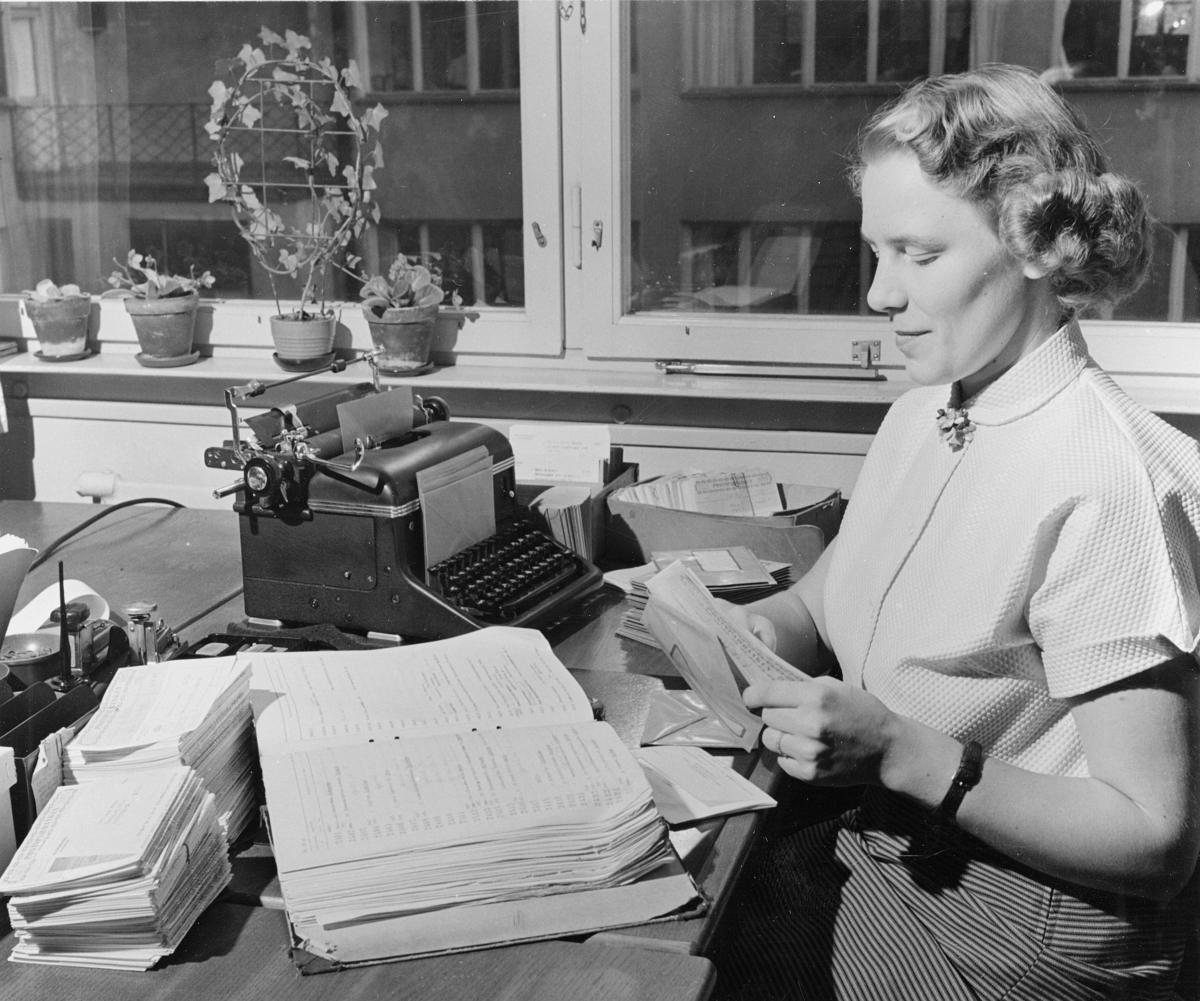 Kontoutdragen expedieras. (på 2 tr., fönster åt gården)
