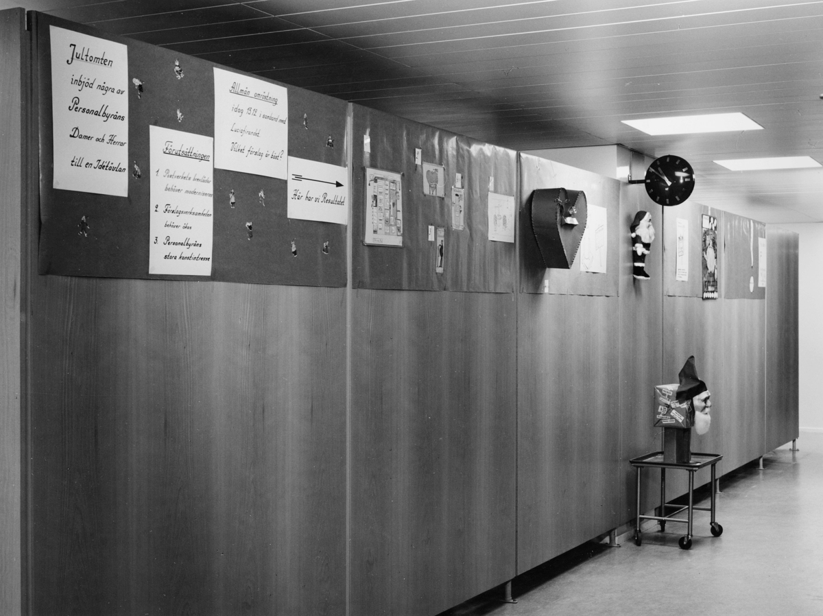 Vägg med samtliga förslag, i en av byråns korridorer.