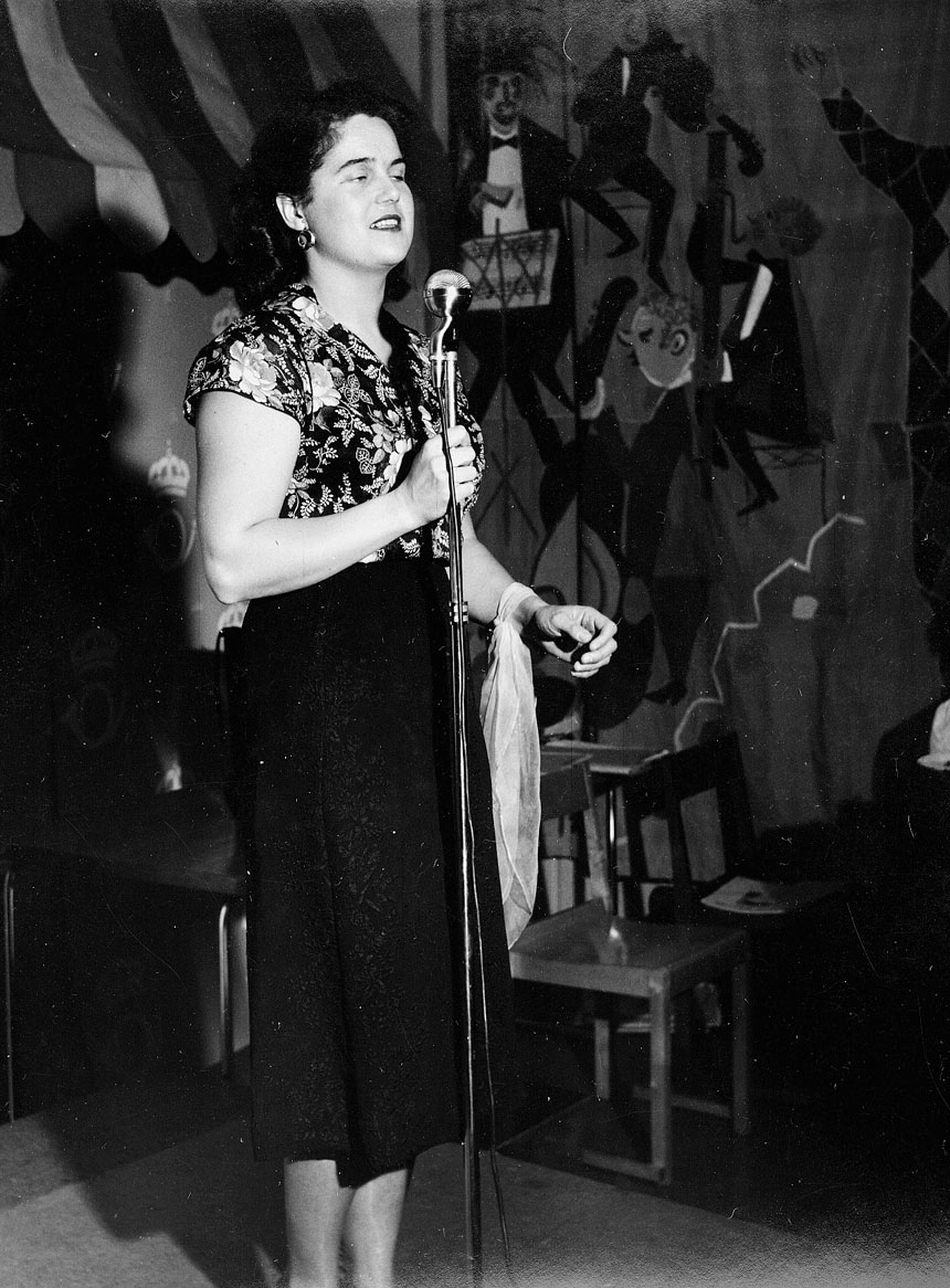 Värdshuset "Den gyldene flygeln". Cabaret med sång och dans i Postgirots lunchrum Klara Norra Kyrkogata, Stockholm, den 28 november 1953.
