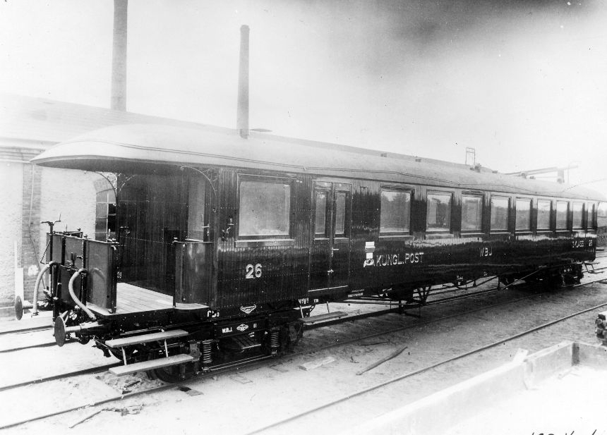 Fotografi föreställande Järnvägspostvagnen Litt CD0 26 på järnvägssträckan Warberg-Borås. Tillverkad 1914.