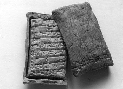 kilskriftsbrev med fodral. 1700-talet f.Kr. Kopia efter original i