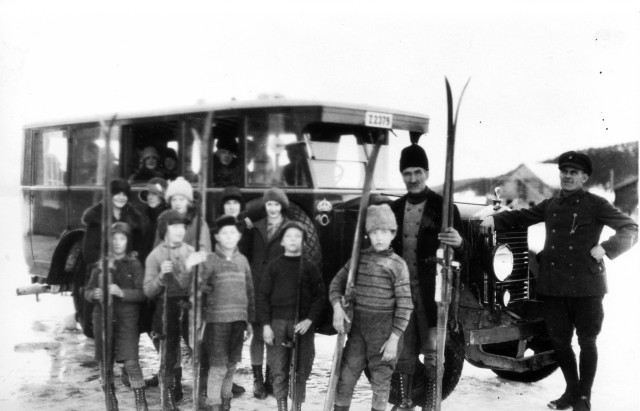 Linjerna Ånge - Röjan - Fjällnäs. Småskolan. Barn med skidor