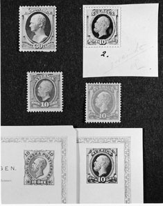 Gravör: Max Mirowsky. Överst från vänster 1) USA, 30 cent Hamilton,