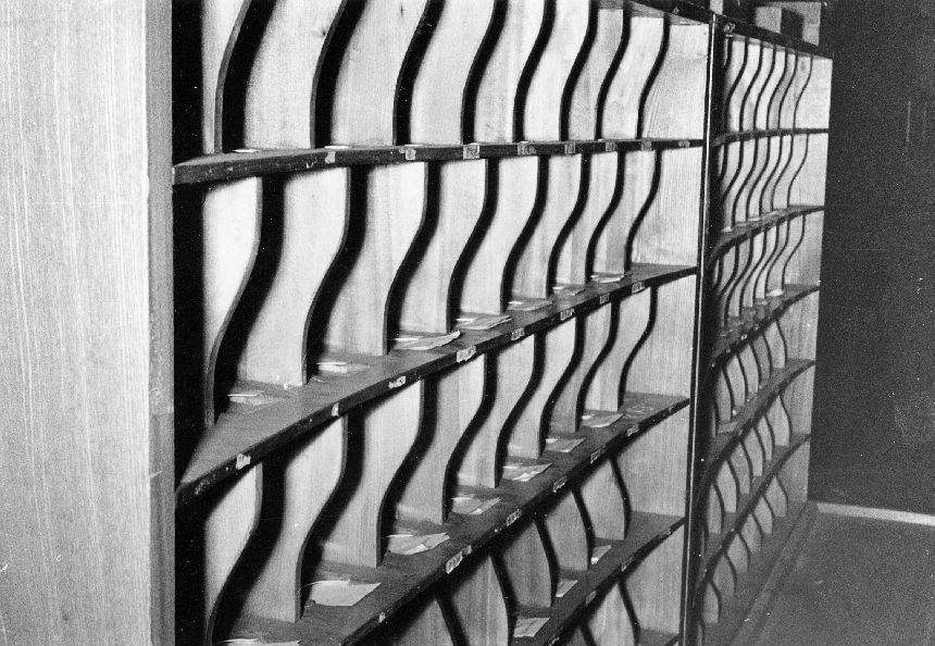 Huvudpostkontoret i Tokyo, Japan. 1955. Brevsortering,