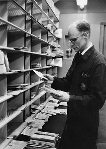 Pkp 307. Kupémästare Tore Söderlund sorterar värden.